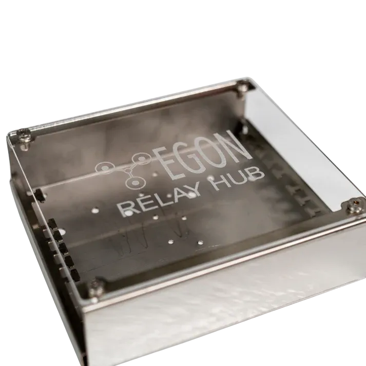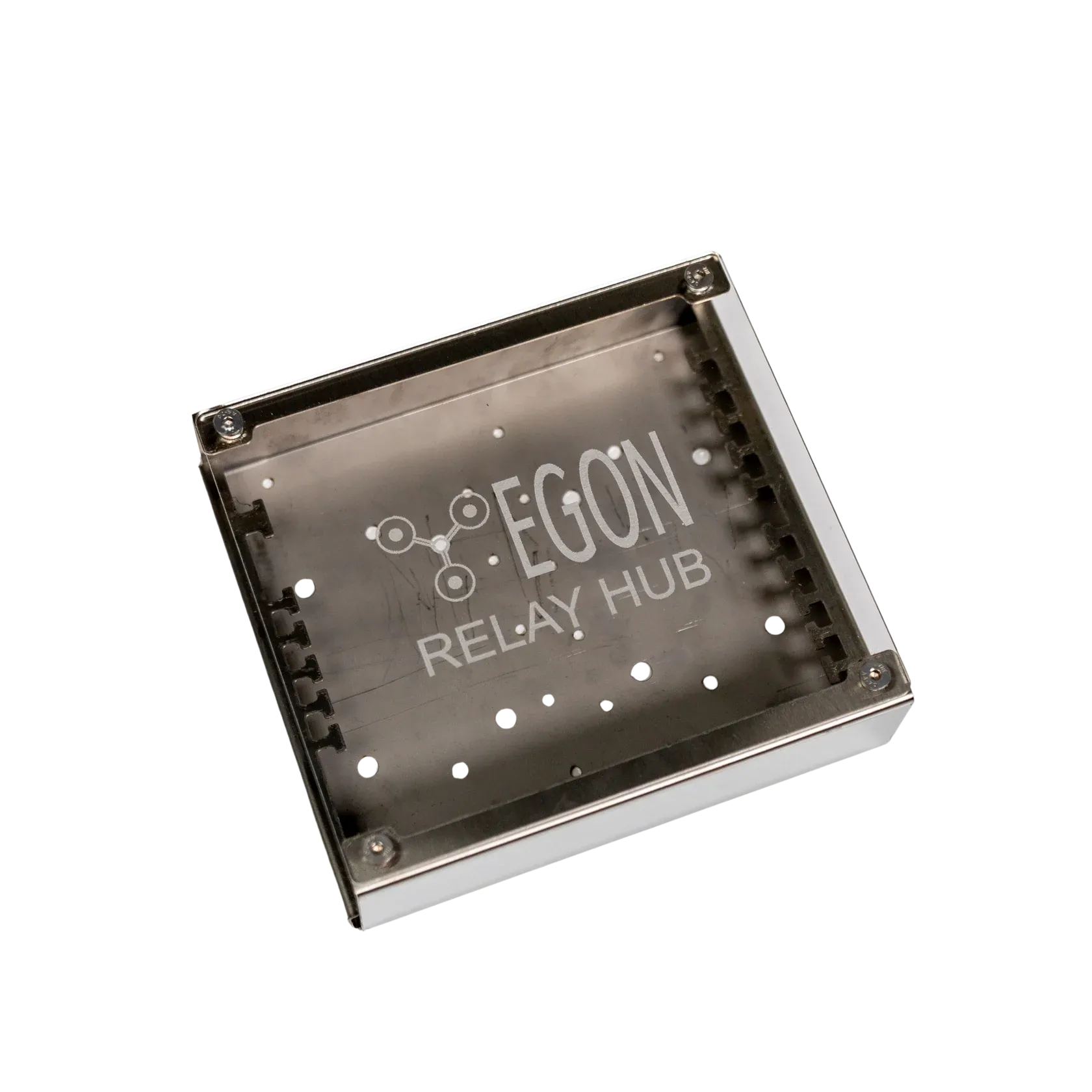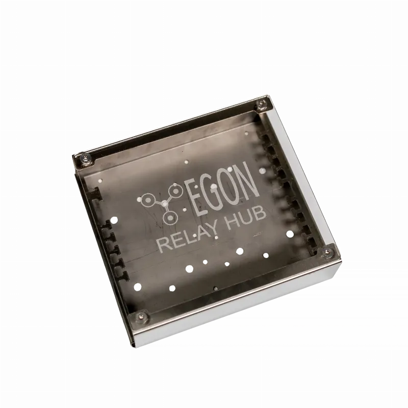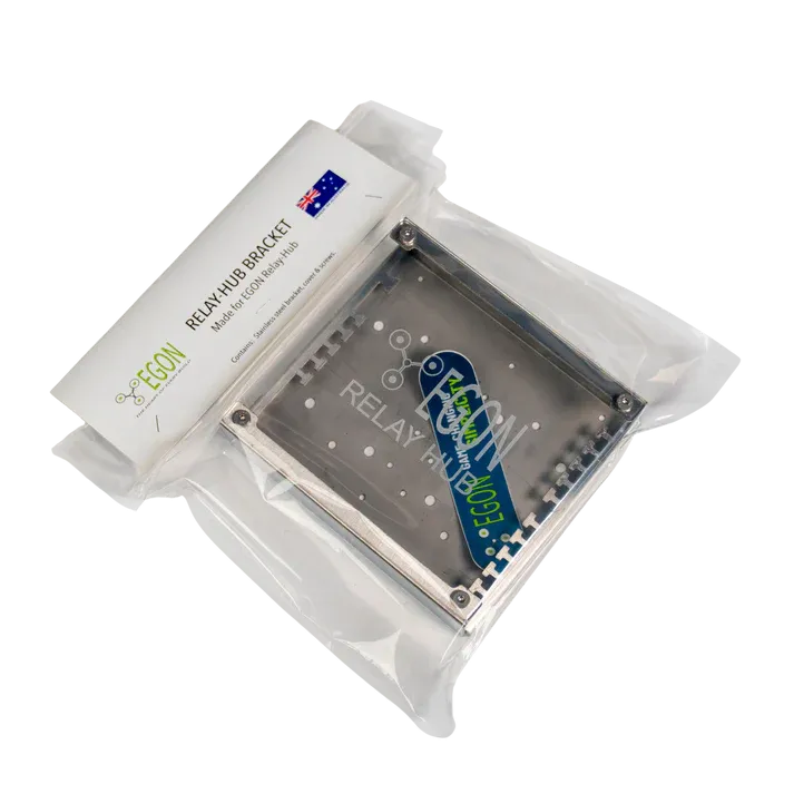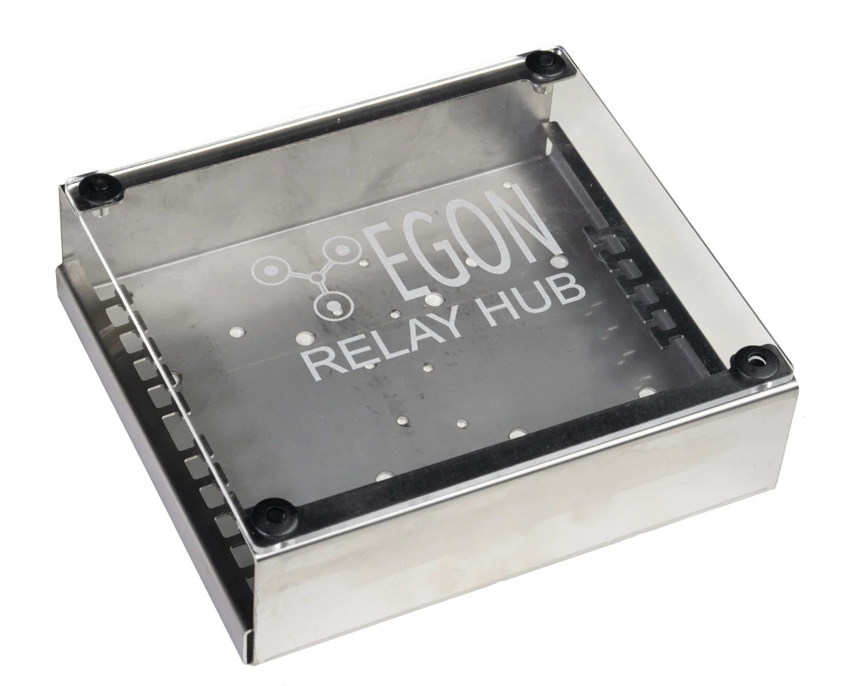 The EGON Relay-Hub Bracket and Cover is specifically designed to mount the EGON Relay-Hub. It consists of a stainless-steel mounting bracket combined with a see-through high-quality hard plastic cover.